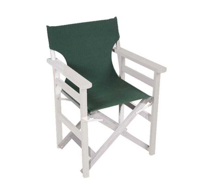 Πολυθρόνα σκηνοθέτη ελληνικής κατασκευής από φουρνιστή οξυά φυσικής ξήρανσης & γαλβανισμένα μεταλλικά εξαρτήματα. Στιβαρός σκελετός και άνετο κάθισμα. Κλασσική επιλογή για το σπίτι αλλά και για τον επαγγελματία.