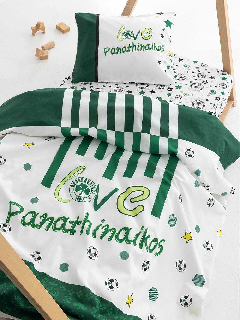 Σετ Σεντόνια Βρεφικά Official Team Panathinaikos F.C. 130×170 FC11 από ύφασμα 100% cotton 144 κλωστών ανά τ. ίντσα. Το κατωσέντονο με λάστιχο διατίθεται σε διάσταση 70×140+15.
