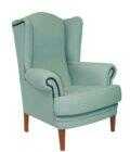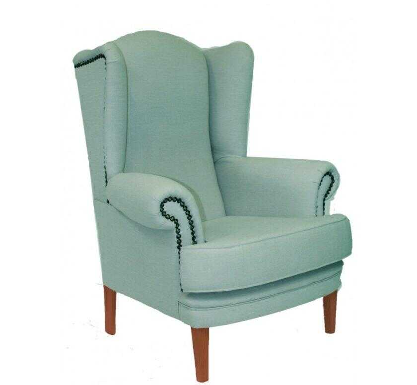 Ξύλινη lounge πολυθρόνα ελληνικής κατασκευής επενδυμένη με ύφασμα ή δερματίνη σε διάφορα χρώματα.
