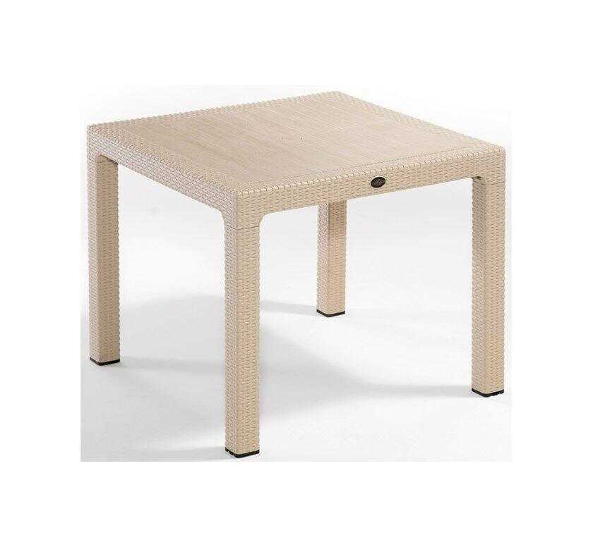 Ιδιαίτερα ανθεκτικό τραπέζι σε σχέδιο “rattan” από πολυπροπυλένιο ενισχυμένο με fiber glass, για μεγαλύτερη σταθερότητα και διάρκεια στο χρόνο. Ειδική επεξεργασία για αντοχή στην υπεριώδη ακτινοβολία. Με αντιστατικά πρόσθετα, που αποτρέπουν τη δίοδο του στατικού ηλεκτρισμού και επομένως κρατούν τη σκόνη μακριά! Διατίθεται και με τζάμι. Διαθέσιμο σε λευκό, ανθρακί, καφέ & cappuccino.