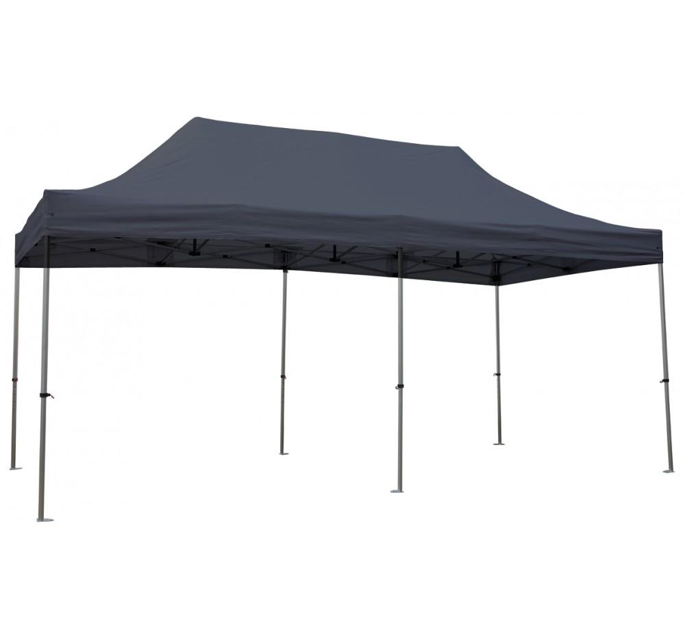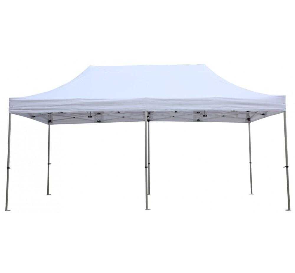 Πτυσσόμενη τέντα με σκελετό αλουμινίου εξάγωνο 40×1,6mm. Ακτίνες αλουμινίου 26x13x1,6mm. Γαλβανιζέ μεταλλική βάση 110x110x3mm. Ύφασμα αδιάβροχο 100% Polyester 300gr/m2 με επένδυση PVC coating χρώματος λευκού & μαύρου. Στη συσκευασία περιλαμβάνεται ο σκελετός, το ύφασμα, τα πασαλάκια, αντηρίδες και η θήκη μεταφοράς. Αναδιπλώνεται κατά μήκος και κατά ύψος με μεγάλη ευκολία. Σημείωση: Συνίσταται η τέντα να χρησιμοποιείται ως πτυσσόμενη και όχι ως μόνιμη εγκατάσταση.