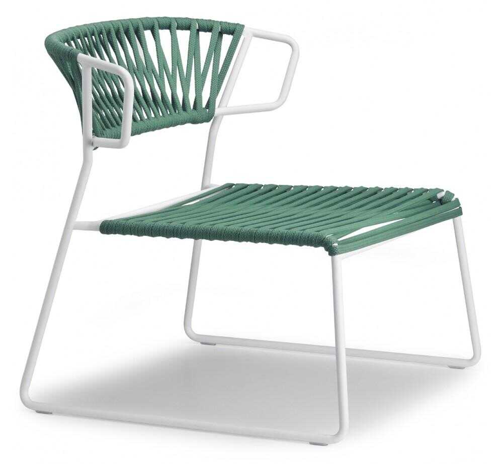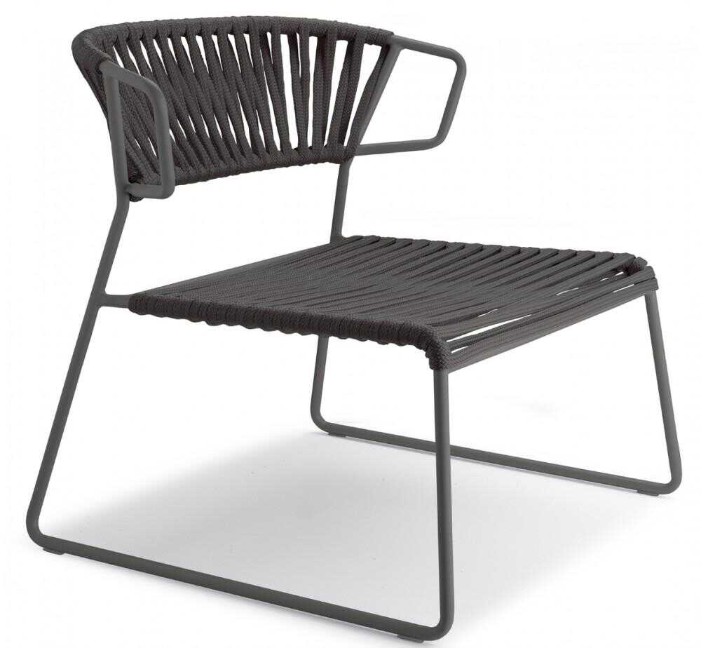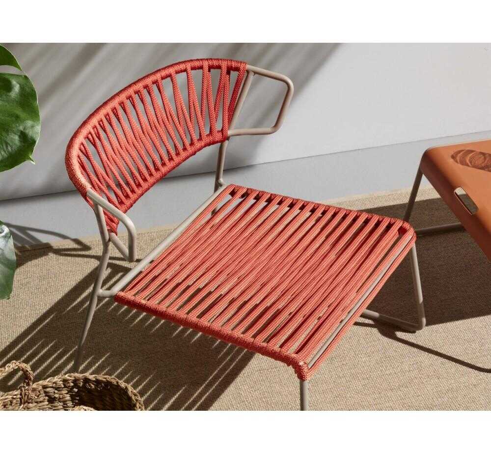 Άνετη πολυθρόνα σαλονιού, ειδικά κατασκευασμένη από ναυτικό ιμάντα σχοινιού, κατάλληλη για εξωτερικούς και εσωτερικούς χώρους. Διατίθεται σε ποικιλία χρωμάτων.