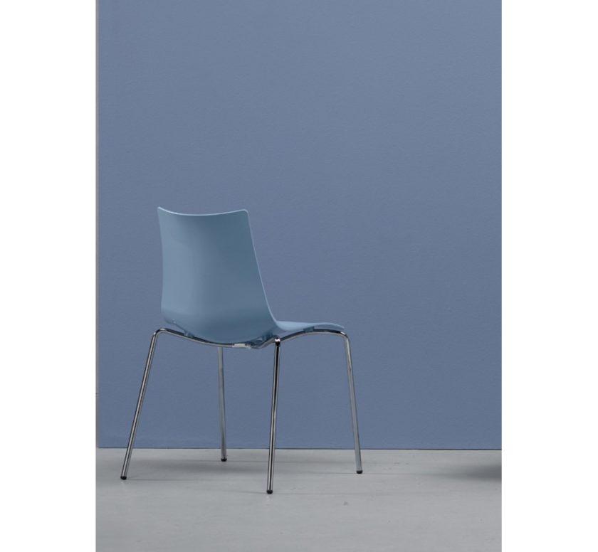 Μεταλλική καρέκλα με κάθισμα από ανακυκλώσιμο technopolymer. Ο σκελετός με χρώμα είναι ιδανικός για εσωτερική και εξωτερική χρήση. Στοιβαζόμενη, διατίθεται σε ποικιλία χρωμάτων.